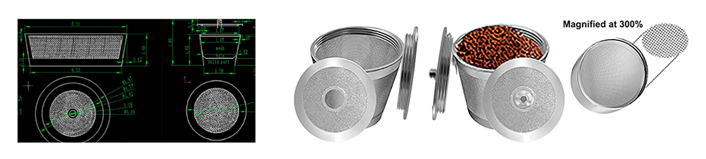 1. Highest Quality: Our reusable K-Cup/K-Pod Filter is made of 100% Food Grade Superior Quality Stainless Steel 304. It has super thin 200 micron-mesh which is engineered to ensure an optimum flow rate of water and it filters in all directions which helps to extract maximum flavours, is non-reactive and doesn’t alter the taste or aroma of your coffee and/or tea in any way!